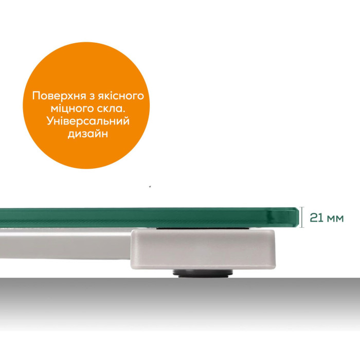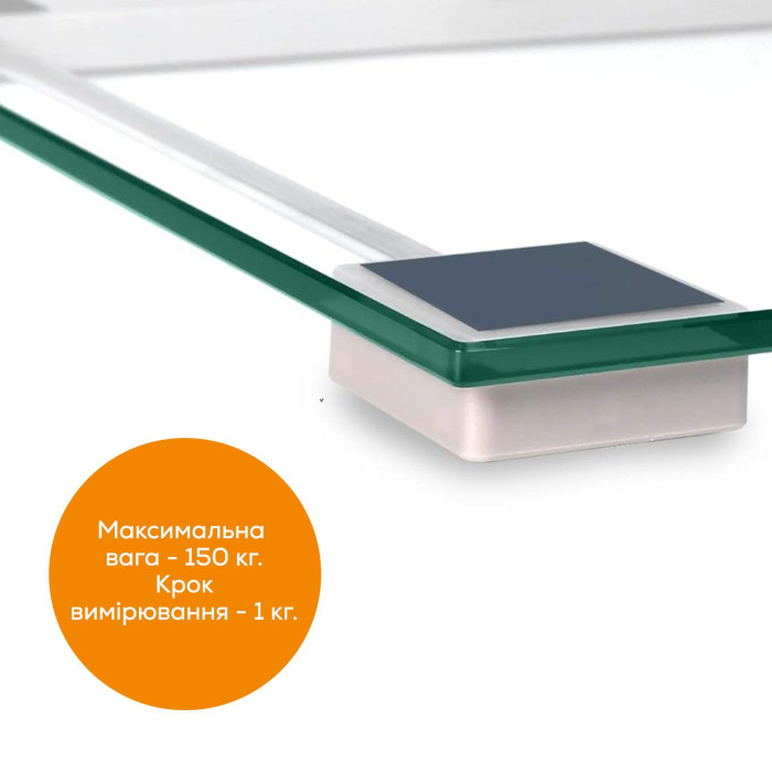 Прозорі підлогові ваги пласкої конструкції висотою 20 мм. Виготовлені з надійного та безпечного скла високої міцності. Розраховані на максимальну вагу до 150 кг, мають індикацію перевантаження.