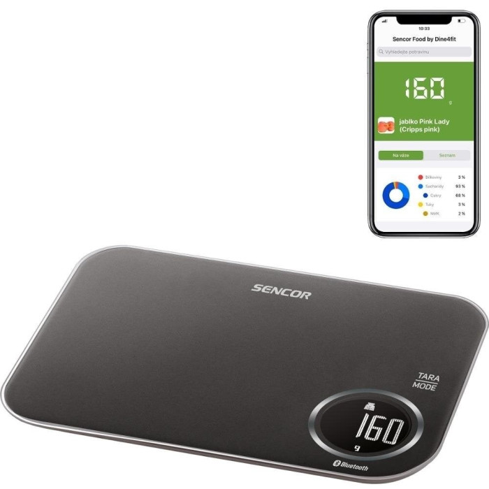 Ваги Sencor кухонні. Оригінальний додаток Sencor FOOD, створений у співпраці з авторами Dine4Fit з багатою базою даних продуктів харчування. Дає докладну інформацію про вживану їжу (вуглеводи, білки, жири, холестерин, кл... Читати далі...