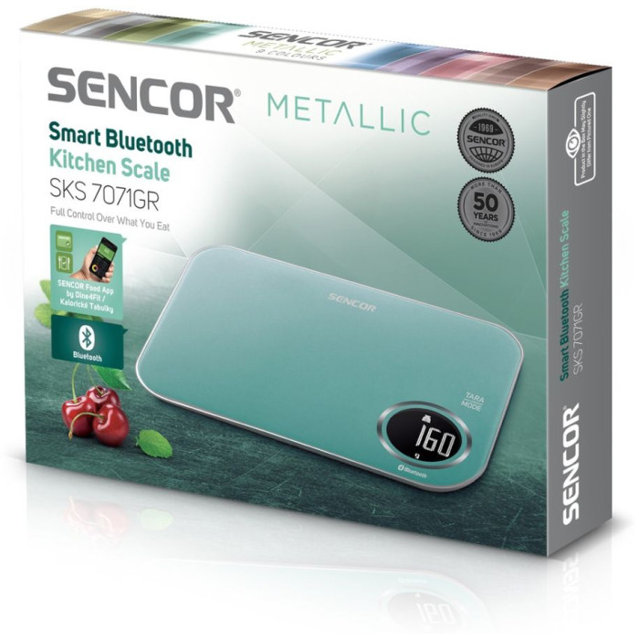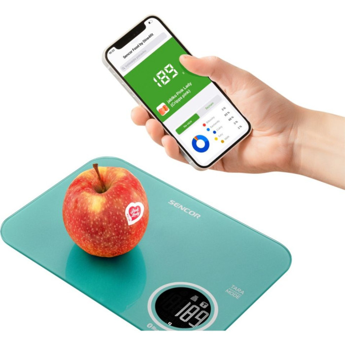 Ваги Sencor кухонні, 5кг, підключення до смартфону, AAAx2, пластик, зелений