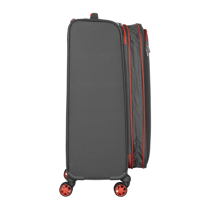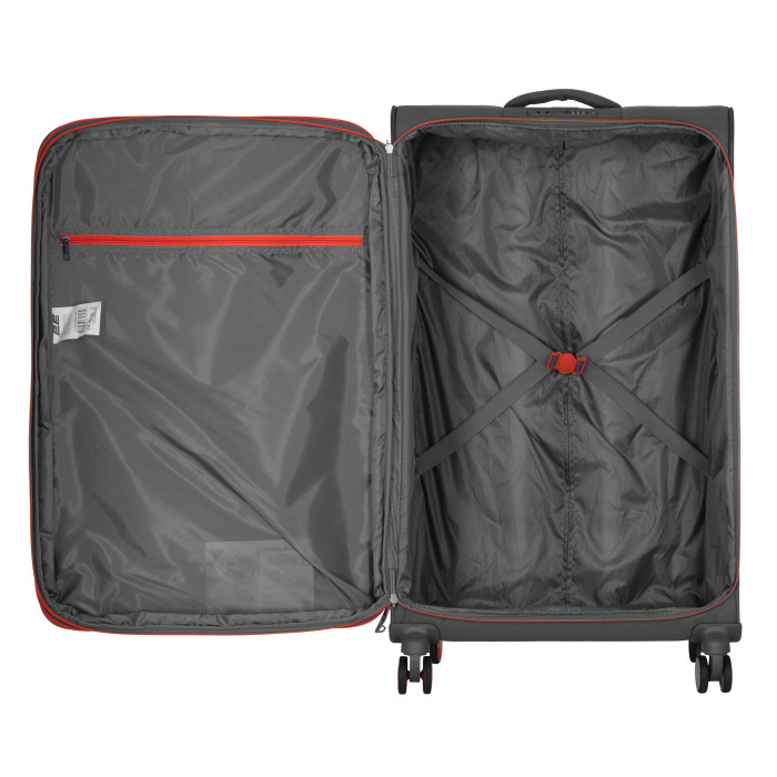 Дорожня валіза 2E розміру M поєднує легкість, міцність і продуманий дизайн для комфортних подорожей. Жорсткий полегшений каркас вкрито зносостійкою поліестеровою тканиною із фактурним плетінням, що забезпечує привабливий вигляд і стійкість до пошкодження. Усередині є еластичні пакувальні ремені для надійної фіксації речей і додаткова кишеня на блискавці для дрібниць. Завдяки особливостям конструкції об’єм валізи можна збільшити із 64 до 78 л, що особливо зручно під час тривалих мандрівок.
