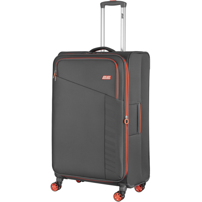 Велика дорожня валіза 2E поєднує легкість, міцність і продуманий дизайн для комфортних подорожей. Жорсткий полегшений каркас вкрито зносостійкою поліестеровою тканиною з фактурним плетінням, що забезпечує привабливий зовнішній вигляд і тривалий термін слугування виробу. Усередині є еластичні пакувальні ремені для фіксації речей і додаткова кишеня на блискавці для дрібниць. Завдяки особливостям конструкції об’єм валізи можна збільшити з 93 до 113 л – практичне рішення для тривалих подорожей.