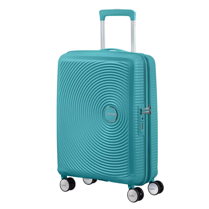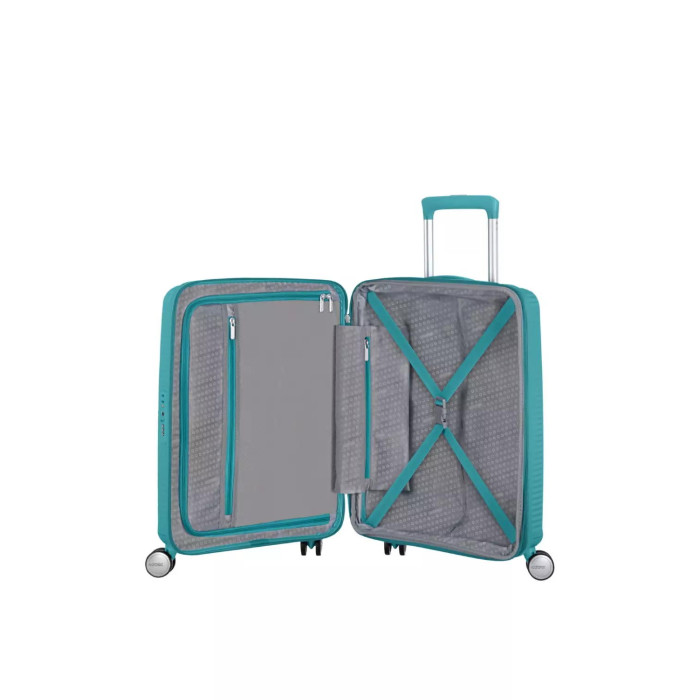 Валіза American Tourister, Soundbox, поліпропілен, мала, 55см, 35.5/41л, TSA, 4 колеса, EXP, бірюзовий