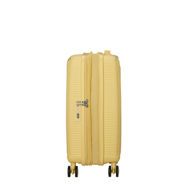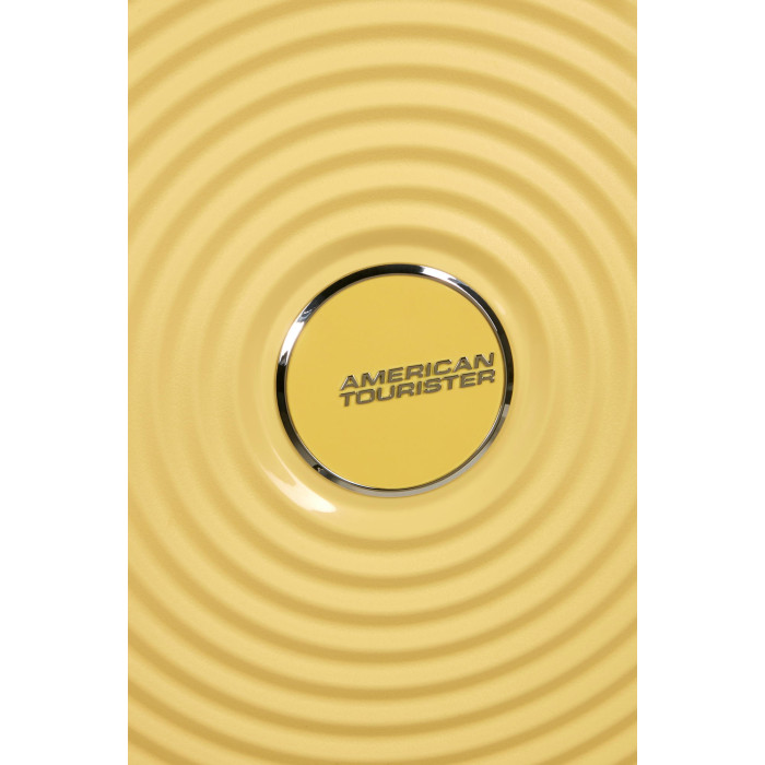 Валіза American Tourister, Soundbox, поліпропілен, мала, 55см, 35.5/41л, TSA, 4 колеса, EXP, пастельно-жовтий