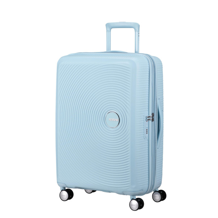 Валіза American Tourister, Soundbox, поліпропілен, середня, 67см, 71.5/81л, TSA, 4 колеса, EXP, пастельно-блакитний