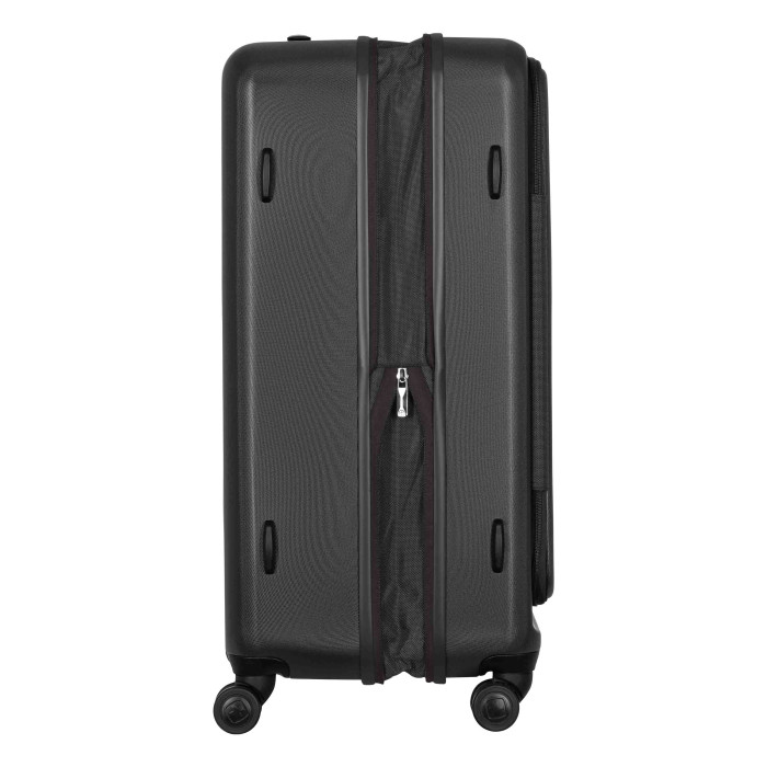 Велика валіза Wenger Skyon Hardside Large створена з полікарбонату та має фронтальний доступ, що формує зручне пакування. Подвійна застібка та кодове блокування Travel Sentry® Approved утворюють надійний захист особистих речей. Система з чотирьох подвійних коліс забезпечує комфортне пересування навіть у заповнених терміналах. Телескопічна ручка фіксується у кількох положеннях. Функція розширення збільшує загальний об’єм до 120 літрів.