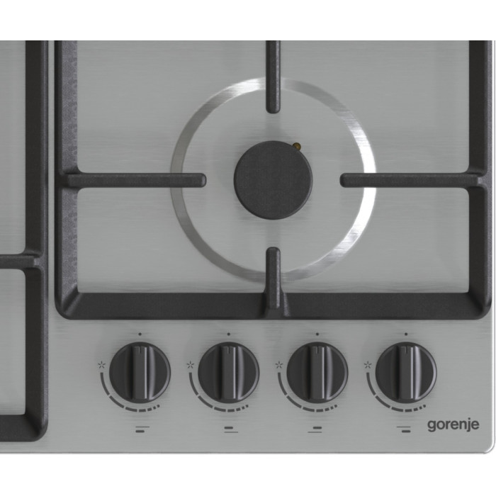 Варильна поверхня Gorenje газова, 60см, чавун, конфорка Wok, нерж