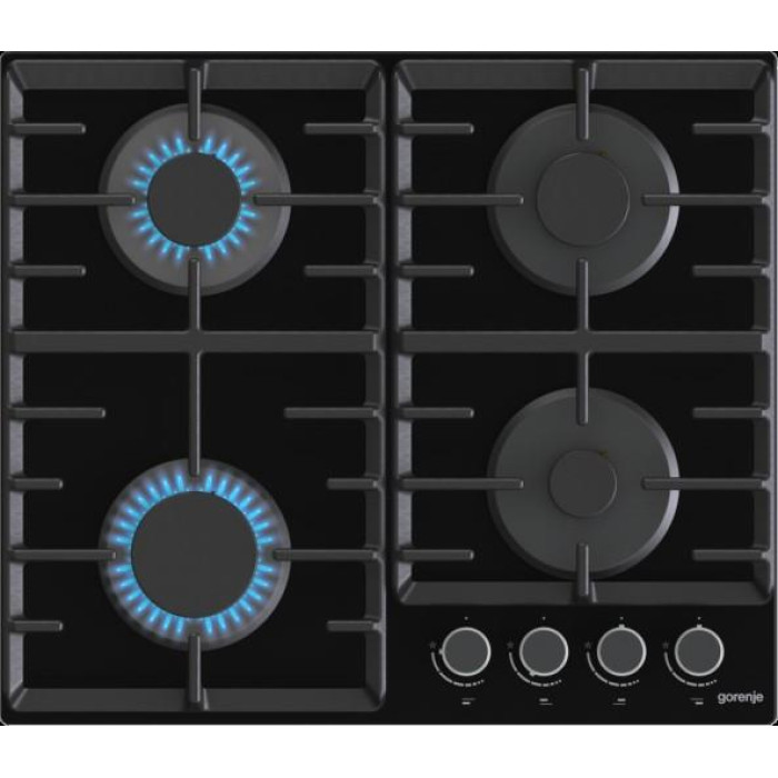 Варильна поверхня Gorenje газова на склі, 60см, чавун, чорний