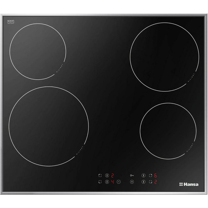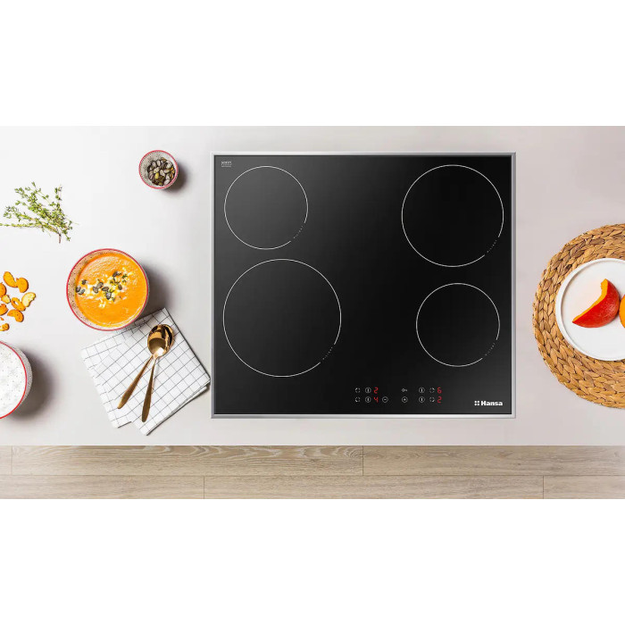 Електрична варильна поверхня Hansa BHCI96306 з 4 зонами HiLight і сенсорним управлінням забезпечує комфортне приготування. Скляна поверхня в чорному кольорі зі сталевою рамкою виглядає сучасно й надійно. Є 9 рівнів потуж... Читати далі...