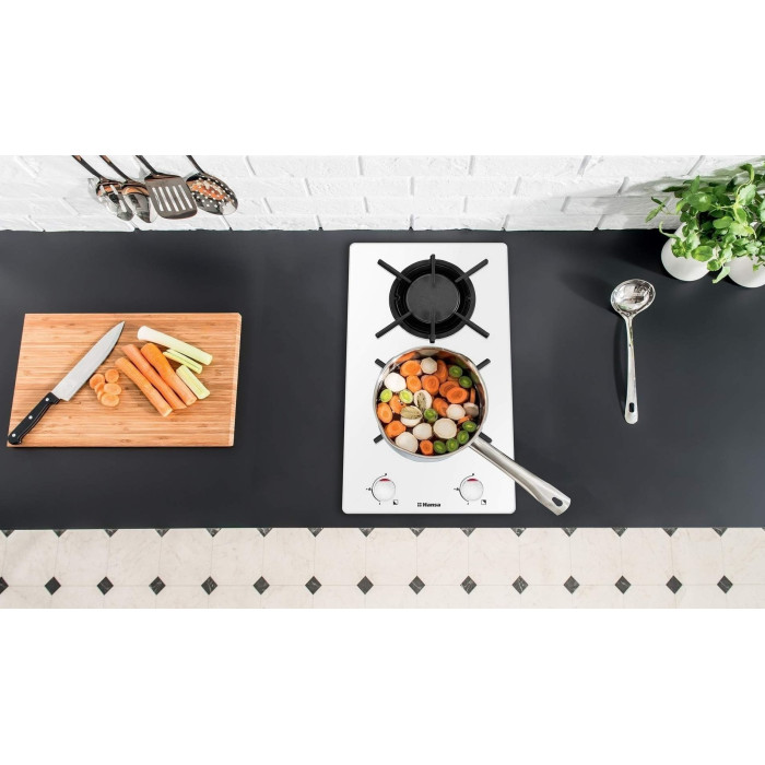 Hansa BHKW310300 – це газова варильна поверхня шириною 30 см у білому дизайні з міцними чавунними ґратами. Сучасний і практичний вибір для будь-якої кухні.