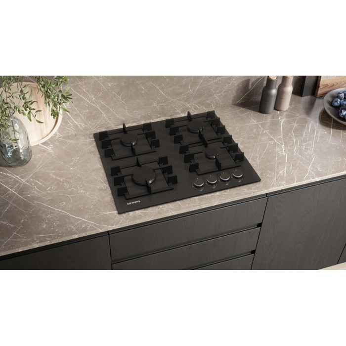 Варильна поверхня Siemens газова на склі, 60см, чавун, чорний