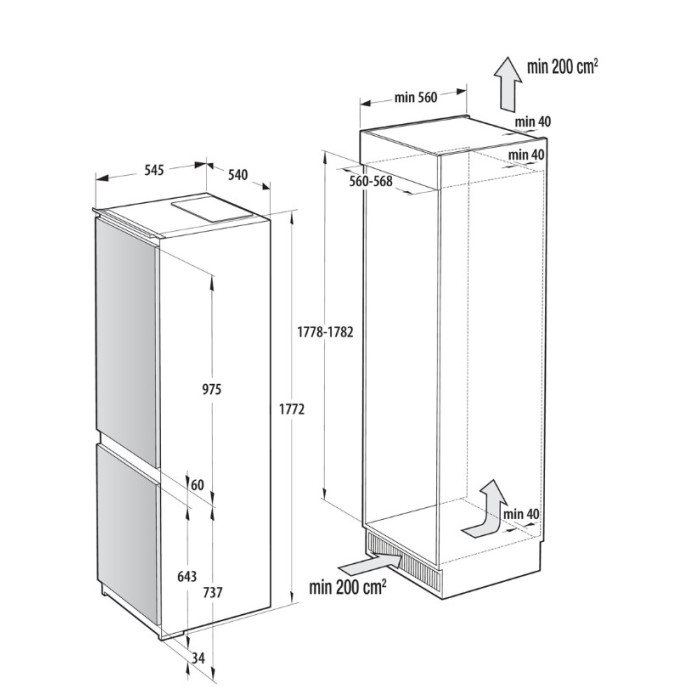 Вбудований холодильник Gorenje NRKI517E41 призначений для інтеграції у кухонні меблі стандартної висоти 177 см. Загальний об’єм 252 л включає 176 л холодильної та 76 л морозильної камери. Система NoFrost Plus разом із Multi Air Flow підтримує стабільну температуру без утворення інею. Електронне керування з LED-дисплеєм забезпечує точний контроль параметрів зберігання.