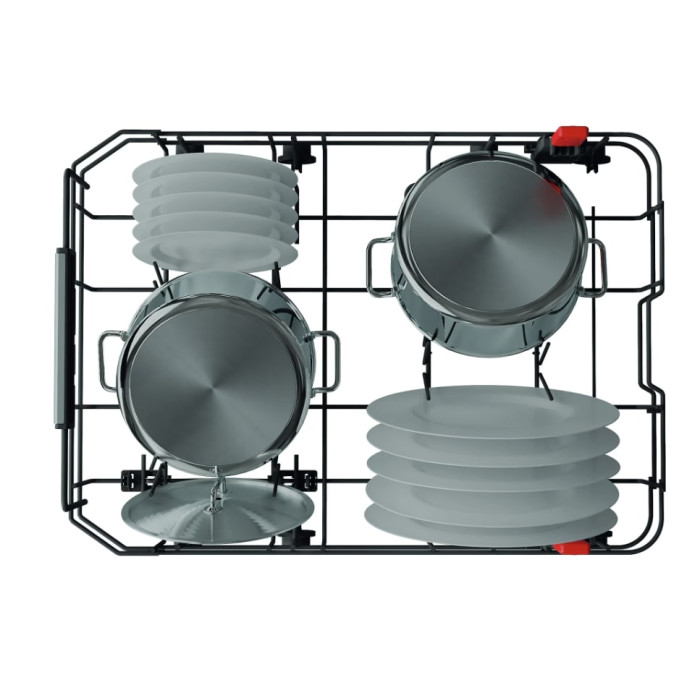 Унікальна конструкція Extra Space дає змогу розміщувати каструлі та сковорідки в нижньому кошику у вертикальному положенні, забезпечуючи додаткове місце для додаткових 10 предметів посуду. Ви економите місце, ви економите час.