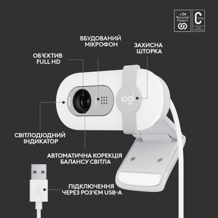 Веб-камера Logitech Brio 100 Off White (960-001617)