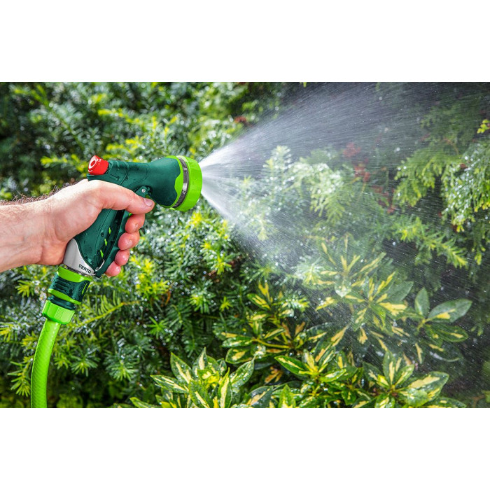 15G713). До набору входять 4 елементи: зрошувач пістолетного типу, 7 функцій, наскрізна муфта 1/2", муфта з автостопом 1/2", адаптер на кран 1/2 ".