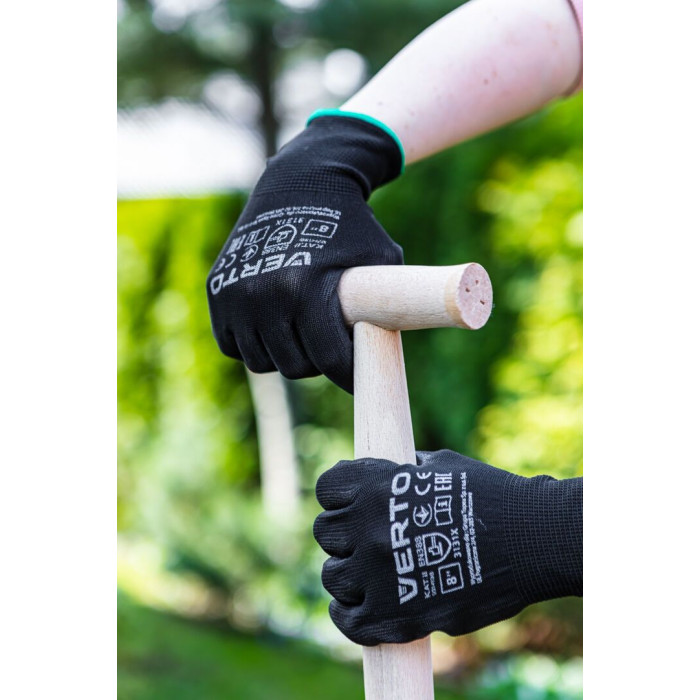Verto Рукавички робочі, поліуретанове покриття, р.8, чорний