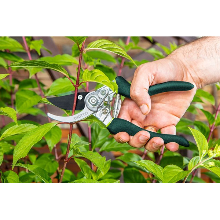 Секатор площинний Verto, тримач прогумований, антиковзкий, d 15мм, 220мм, 272гр (15G204)