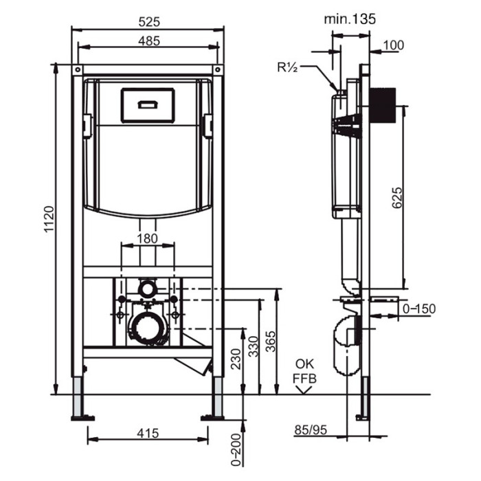 Інсталяція прихованого монтажу Villeroy & Boch VICONNECT для підвісного унітазу, регульована висота (92246100)