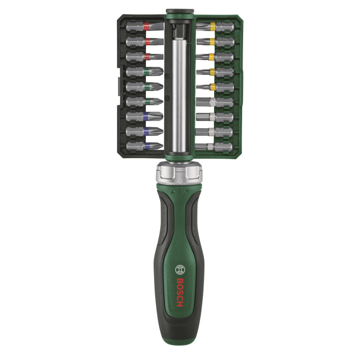 Викрутка Bosch з тріскачкою, 18 біт, 225мм, сталь CrV