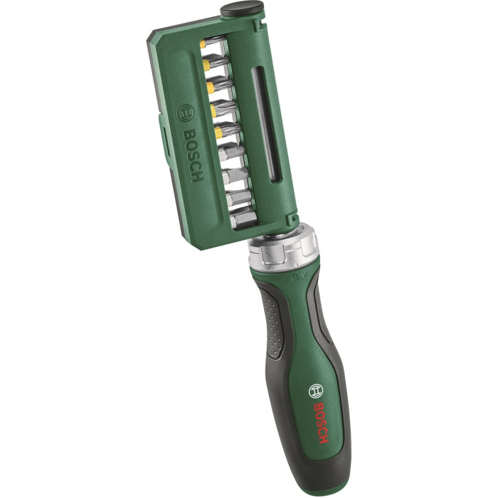 Для складання меблів, ремонту або інших завдань «зроби сам» викрутка-тріскачка Bosch з храповиком на 18 насадок - найкраща у своєму класі для контрольованого та легкого закручування всіх типів шурупів. Тріскачка має порошкове металургійне зубчасте колесо з 36 зубцями та забезпечує крутний момент до 36 Нм. Для швидкої зміни напрямку обертання інтуїтивно зрозуміле металеве кільце можна повертати зліва направо, а центральне положення встановлюється для ручного закручування без тріскачки.