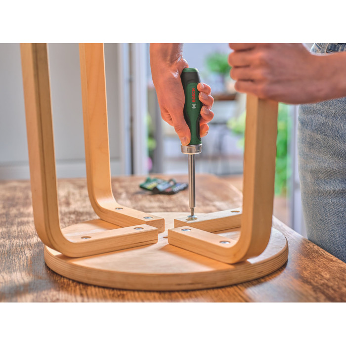 Викрутка-тріскачка з храповиком від Bosch - найкраща у своєму класі, коли йдеться про контрольоване та легке відкручування або закручування всіх типів гвинтів. Тріскачка має порошкове металургійне зубчасте колесо з 36 зубцями та забезпечує крутний момент до 36 Нм.