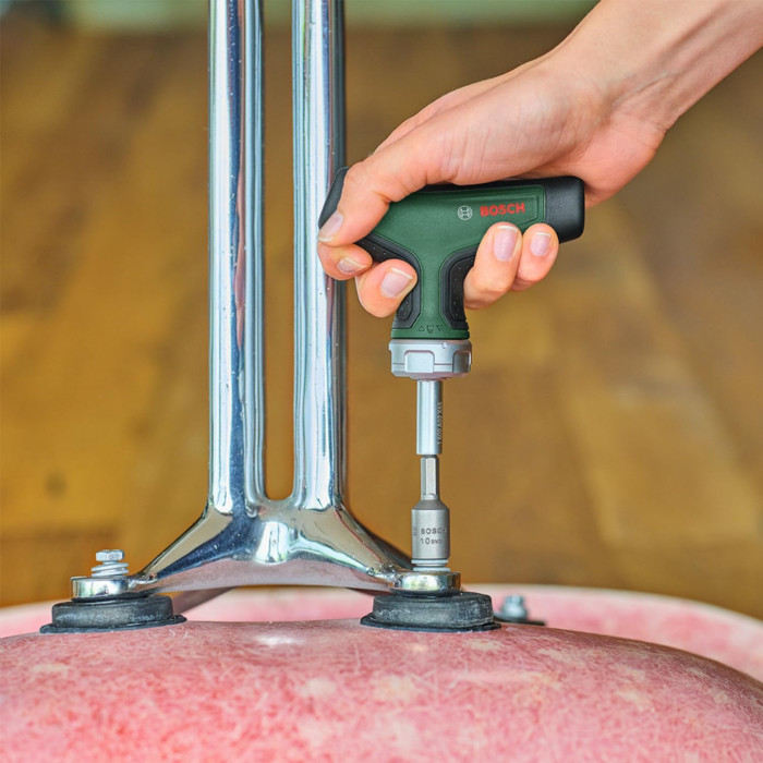 Ця викрутка-тріскачка Bosch із храповиком і Т-подібною рукояткою ідеально підходить для виконання складних завдань і роботи у важкодоступних місцях.