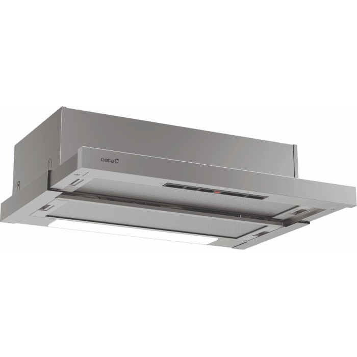 Cata TFK 6005 (02034604) — компактна телескопічна витяжка 60 см з нержавіючої сталі, продуктивністю 360 м³/год та класом енергоефективності B. 2 швидкості, просте механічне керування, яскраве LED-освітлення та миючі алюмінієві фільтри. Тиха на першій швидкості, легко ховається в шафу — ідеальний вибір для невеликих та середніх кухонь з інтенсивним готуванням.