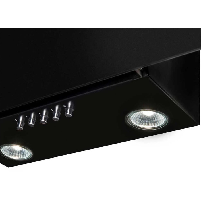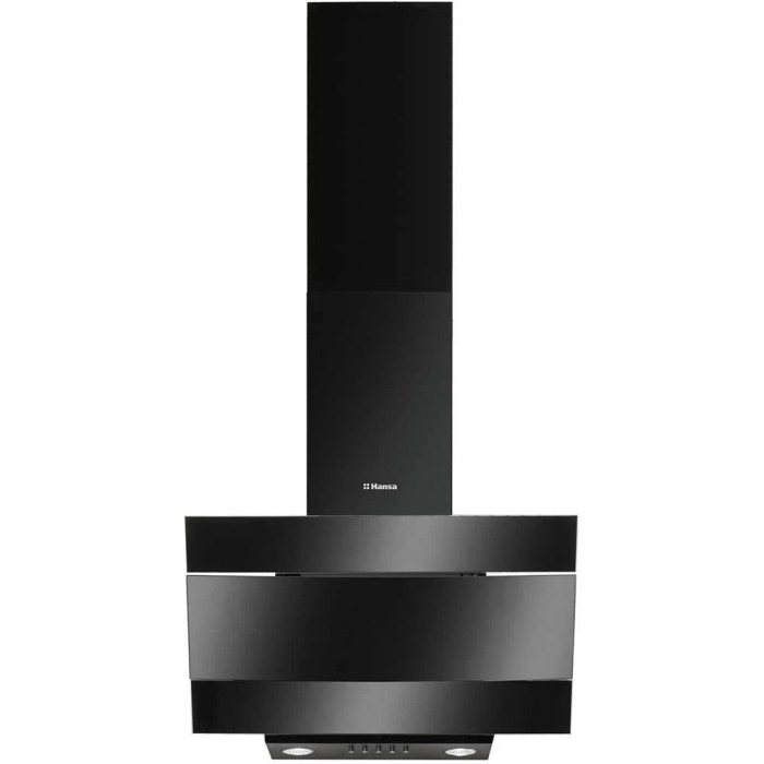 Hansa OKC624SH – стильна похила витяжка шириною 60 см у чорному кольорі. Працює в трьох режимах швидкості з максимальною продуктивністю 300 м³/год. Оснащена світлодіодним підсвічуванням, алюмінієвим жировим фільтром та підтримує встановлення вугільних фільтрів для рециркуляції повітря.