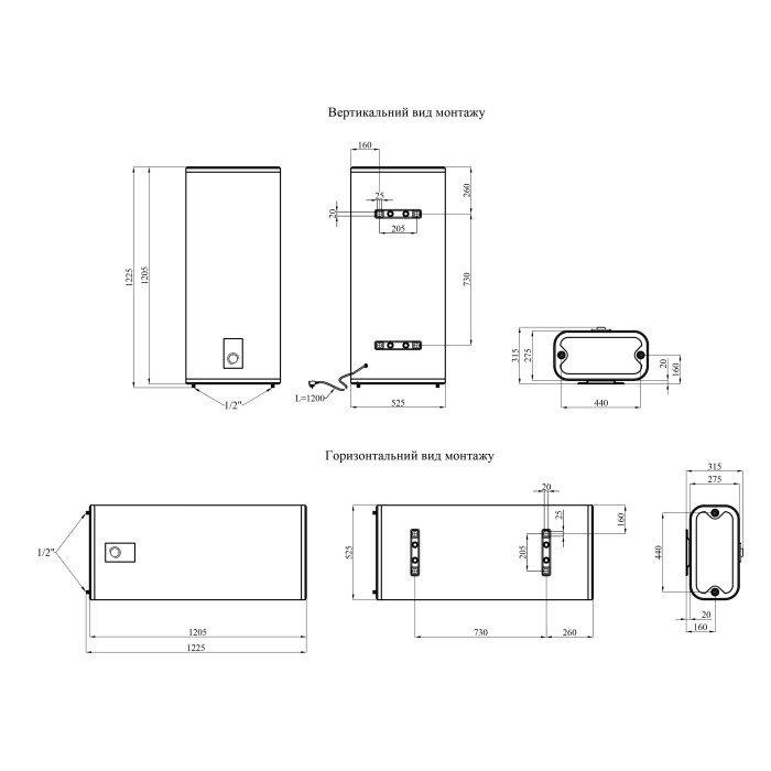 Водонагрівач, запобіжний клапан, розпірні анкери з L-гаком, силіконова трубка, наклейка ERP, інструкція.