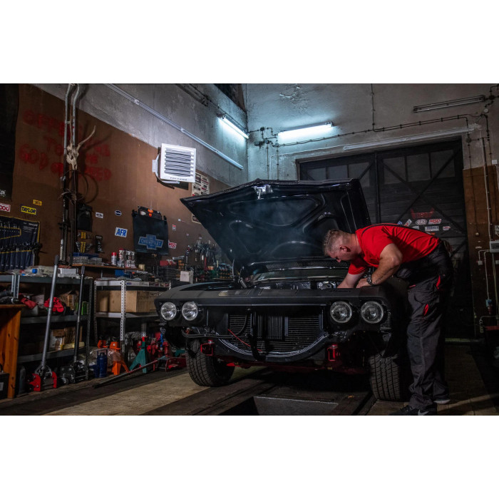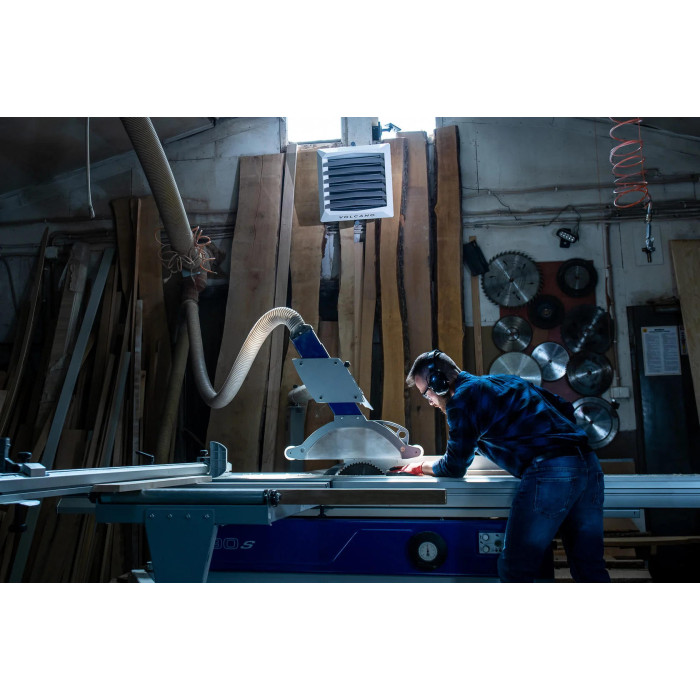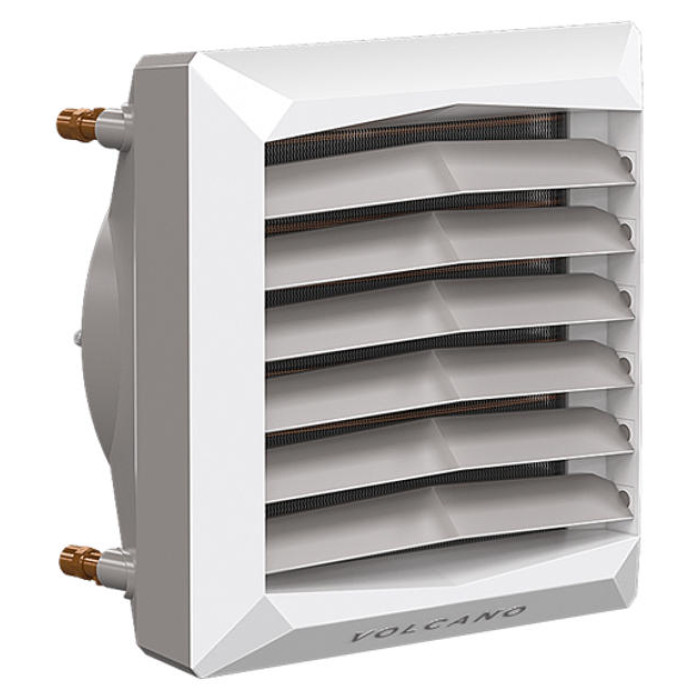 Volcano VR Mini AC від EuroHeat – водяний тепловентилятор потужністю 20 кВт для ефективного опалення та охолодження приміщень з використанням гарячої води 90°C. Вентилятор розподіляє тепле повітря в чотирьох напрямках на відстань до 14 м горизонтально та 8 м вертикально, не потребуючи вуличного повітря.