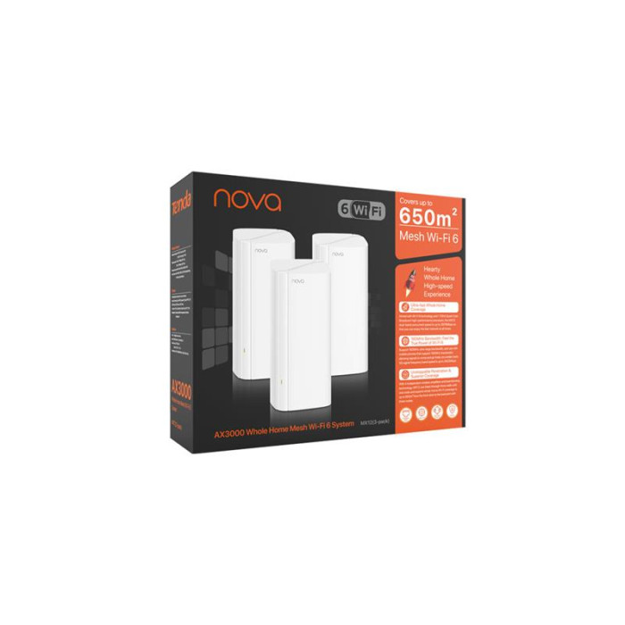 Nova MX12 — це система AX3000 Whole Home Mesh Wi-Fi 6. MX12 забезпечує надійне покриття Wi-Fi на площі до 7000 футів завдяки чотирьом незалежним бездротовим підсилювачам і технології формування променя. У порівнянні з продуктами AX1800 Wi-Fi 6, MX12 працює на основі технології Wi-Fi 6 із дводіапазонним паралелізмом до 2976 Мбіт/с, що покращено на 66%. Дводіапазонний дизайн AX3000 Wi-Fi 6 і повна підтримка гігабітного порту можуть забезпечити повну віддачу від ваших високошвидкісних широкосмугових послуг. Він має потужний 4-ядерний процесор із тактовою частотою 1,7 ГГц і велику пам’ять об’ємом 256 МБ, яка може обслуговувати більше доступу до термінальних пристроїв. Усі термінали можуть одночасно насолоджуватися високошвидкісним Wi-Fi, низькою затримкою для онлайн-ігор і плавним відео 4K і додатками VR HD. Він має характеристики простого встановлення та дозволяє автоматичне підключення до мережі та мережевих кнопок MESH. Завдяки плавному роумінгу в усьому будинку MX12 створює високошвидкісну та інтелектуальну систему бездротової мережі Mesh для всієї родини.