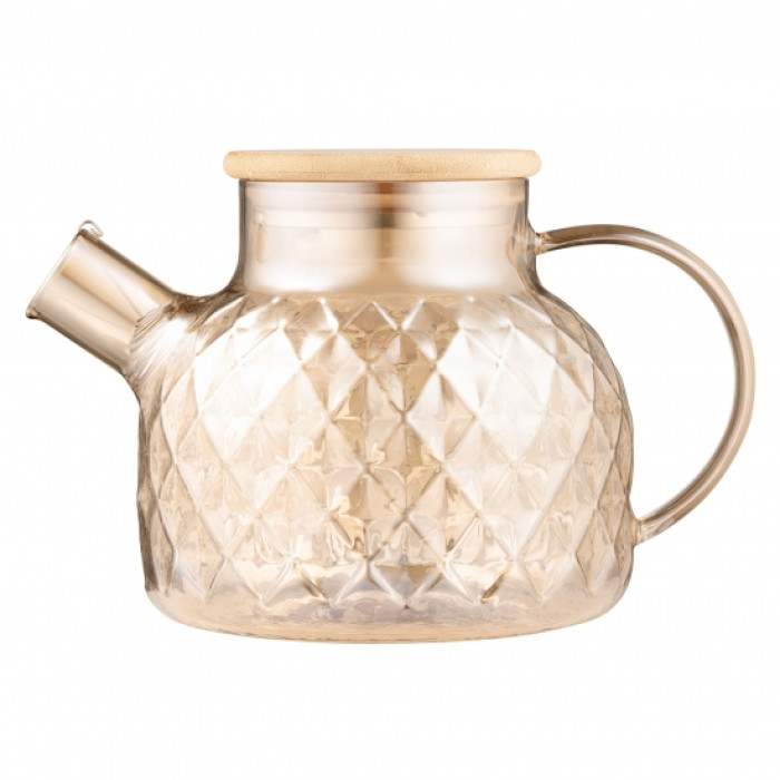 Заварник Ardesto Golden Moon Diamond 1000мл, боросилікатне скло, бамбук, золотистий