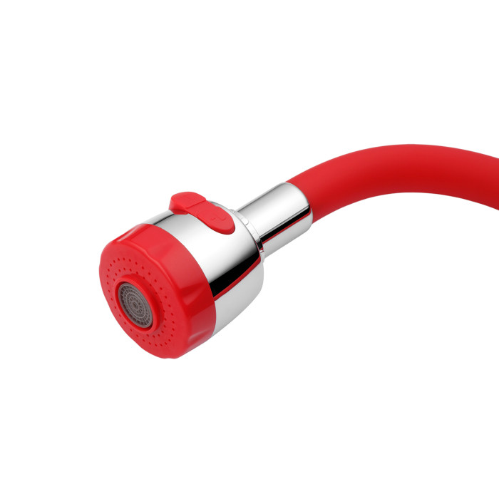 Особливо зручний гнучкий вилив, який забезпечує свободу маневрів і дозволяє спрямовувати воду в потрібне місце, що спрощує миття великих кухонних предметів. Змішувач також оснащений аератором з двома режимами подачі води - душовим та струменем, що дозволяє вибрати оптимальний варіант для різних потреб.