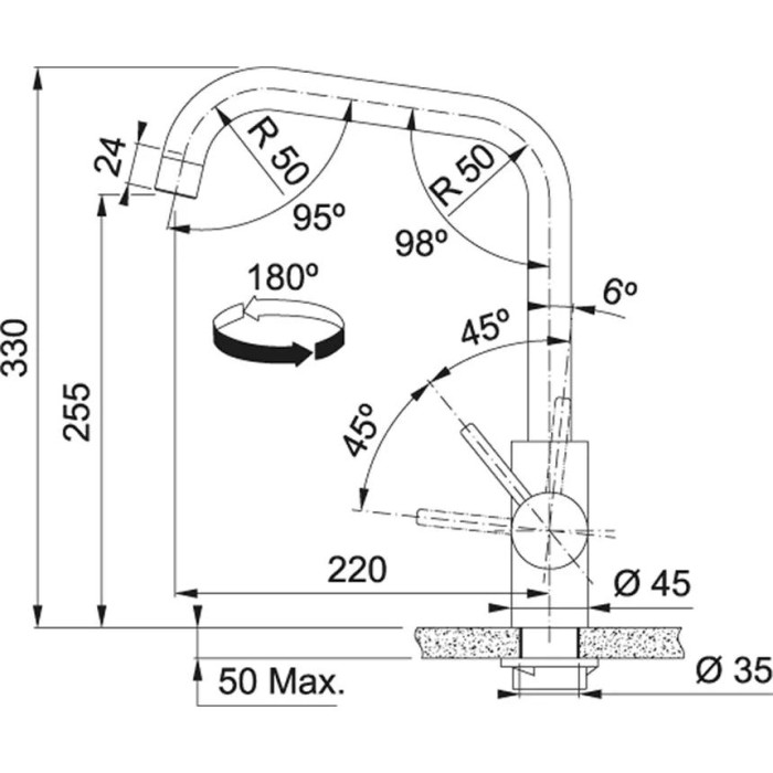 Змішувач для кухні Franke Eos Neo U, довж.виливу - 220мм, поворотний, 1+аератор, нерж