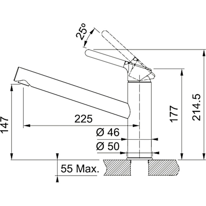 Змішувач для кухні Franke Orbit, довж.виливу - 225мм, 1важіль, хром-сірий камінь
