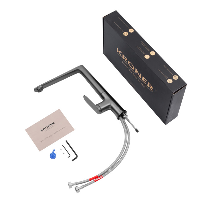 Матова поверхня стійка до відбитків пальців і легко очищається, зберігаючи охайний зовнішній вигляд, а продумана конструкція гарантує стабільну подачу води без бризок. Kroner Element 211512А-5301 — відмінний вибір для тих, хто цінує стиль, практичність і якість в кожній деталі кухні.