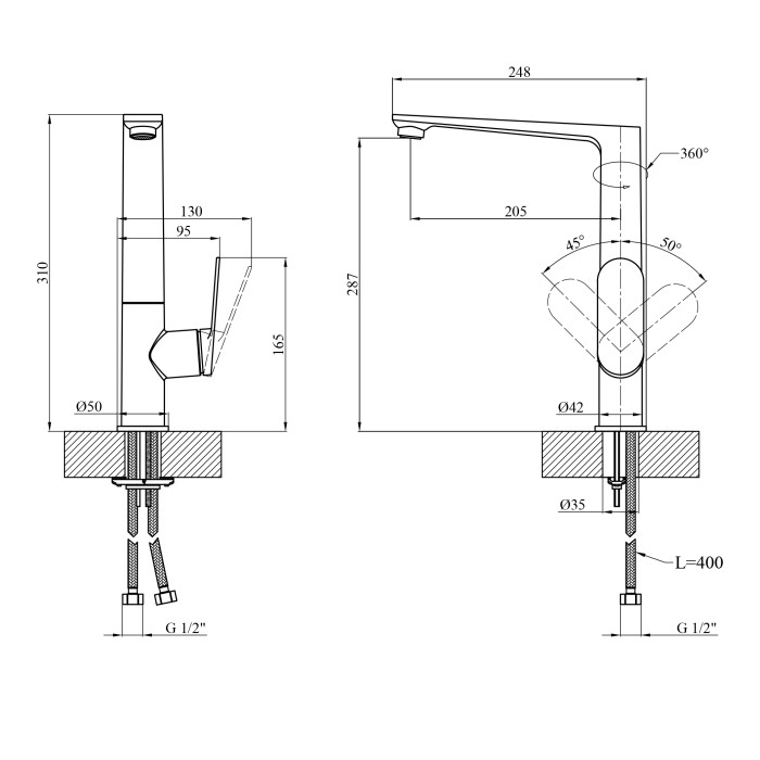 Корпус з латуні Н59. Картридж SEDAL - Іспанія. Аератор Neoperl - Німеччина. Гнучке підведення Tucai - Іспанія.