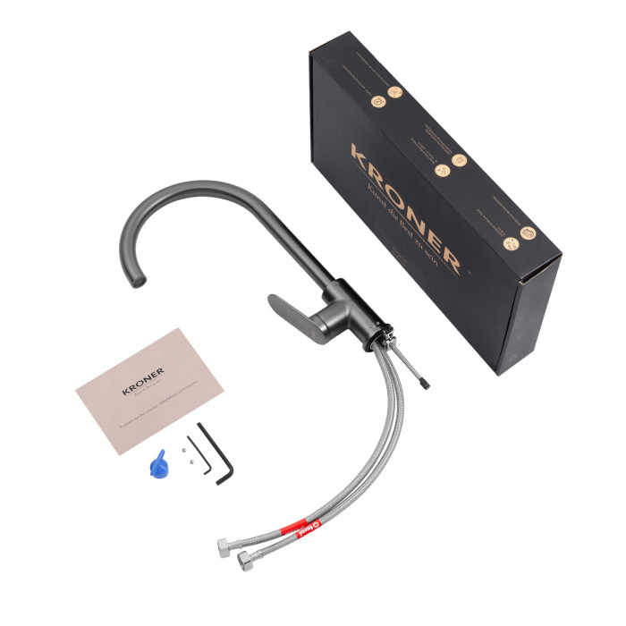 Матова поверхня стійка до відбитків пальців і легко очищається, зберігаючи охайний зовнішній вигляд, а продумана конструкція гарантує стабільну подачу води без бризок. Kroner Element 211512B-5301 — відмінний вибір для тих, хто цінує стиль, практичність і якість в кожній деталі кухні.