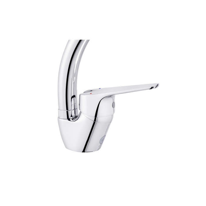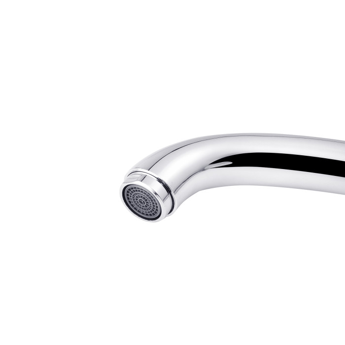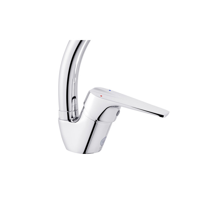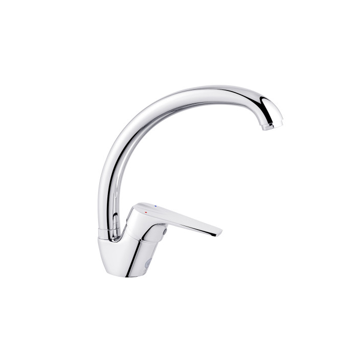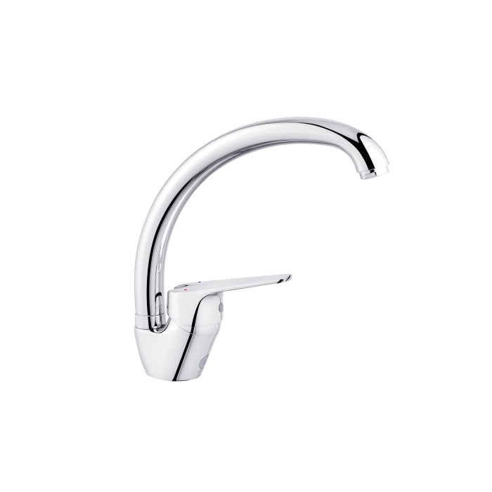Змішувач для кухні Kroner KRM Odra - C032- ідеальний вибір для вашої кухні. Виготовлений з високоякісного силуміну, він гарантує міцність та довговічність. Має привабливий глянцевий хромований колір, що додає йому елегантності. Змішувач оснащений картриджним механізмом змішування, що дозволяє зручно регулювати температуру води. Його унікальна C-подібна форма виливу забезпечує зручність під час наповнення посуду або миття продуктів. Насолоджуйтесь функціональністю і стилем змішувача Kroner.