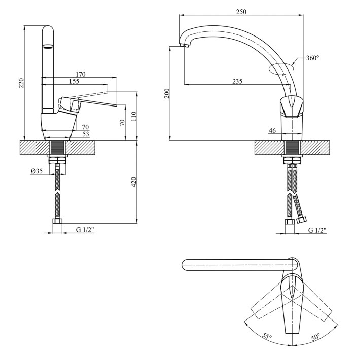 Змішувач, гнучка підводка, кріплення, інструкція.