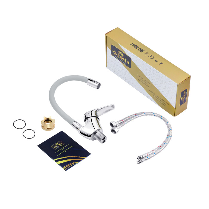 Змішувач для кухні Kroner KRM Odra - C032GRA - ідеальний вибір для вашої кухні. Виготовлений з високоякісного силуміну, він гарантує міцність та довговічність. Має привабливий глянцевий хромовано-сірий колір, що додає йо... Читати далі...