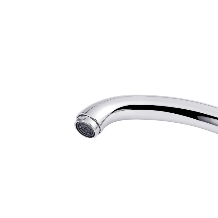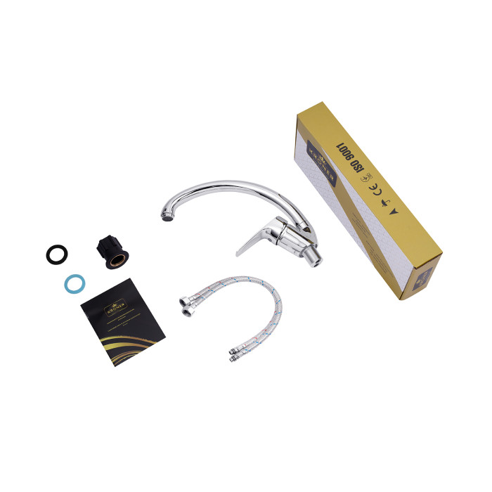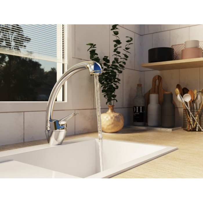 Змішувач для кухні Kroner KRM Odra - C036 - ідеальний вибір для вашої кухні. Виготовлений з високоякісного силуміну, він гарантує міцність та довговічність. Має привабливий глянцевий хромований колір, що додає йому елегантності. Змішувач оснащений картриджним механізмом змішування, що дозволяє зручно регулювати температуру води. Його унікальна С-подібна форма виливу забезпечує зручність під час наповнення посуду або миття продуктів. Насолоджуйтесь функціональністю і стилем змішувача Kroner.