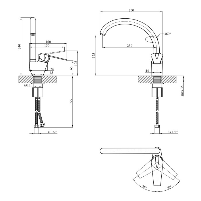 Змішувач, гнучка підводка, кріплення, інструкція.