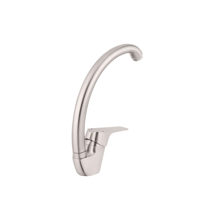 Змішувач для кухні Kroner KRM Odra - N035 - ідеальний вибір для вашої кухні. Виготовлений з високоякісного силуміну, він гарантує міцність та довговічність. Має привабливий матовий нікелевий колір, що додає йому елегантності. Змішувач оснащений картриджним механізмом змішування, що дозволяє зручно регулювати температуру води. Його унікальна C-подібна форма виливу забезпечує зручність під час наповнення посуду або миття продуктів. Насолоджуйтесь функціональністю і стилем змішувача Kroner.