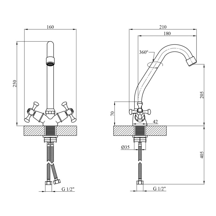 Діаметр підключення шлангів*