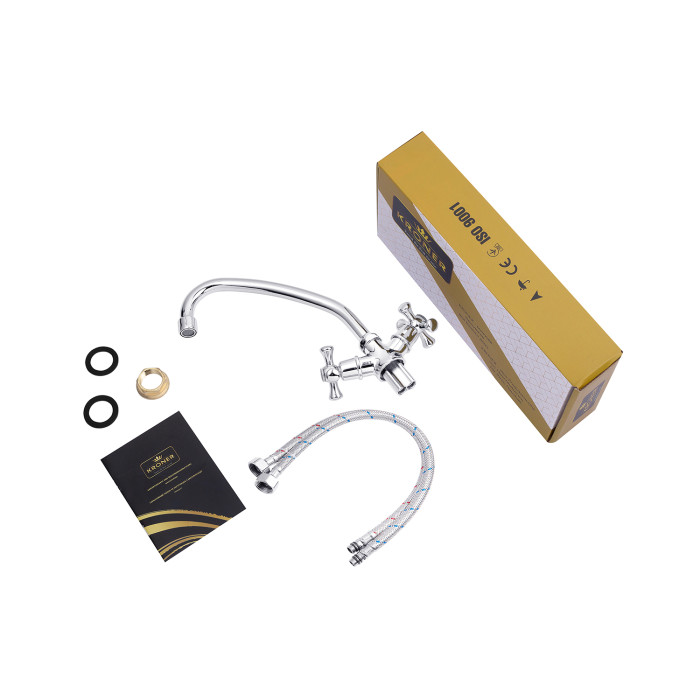 Змішувач для кухні Kroner KRM Rhein - C030 - ідеальний вибір для вашої кухні. Виготовлений з високоякісного силуміну, він забезпечує надійність та довговічність використання. Хромований колір і глянцева поверхня надають йому стильний вигляд, вписуючись в будь-який дизайн кухні. Форма С-подібного виливу дозволяє легко наповнювати великі каструлі і зручно мити посуд. Механізм змішування на основі кран-букси сприяє точному регулюванню температури води. Насолоджуйтесь функціональністю і стилем змішувача Kroner.