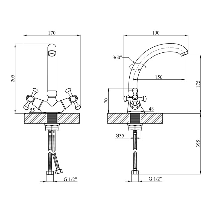 Змішувач, гнучка підводка, кріплення, інструкція.