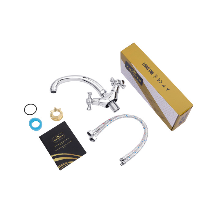 Змішувач для кухні Kroner KRM Rhein - C031 - ідеальний вибір для вашої кухні. Виготовлений з високоякісного силуміну, він забезпечує надійність та довговічність використання. Хромований колір і глянцева поверхня надають йому стильний вигляд, вписуючись в будь-який дизайн кухні. Форма С-подібного виливу дозволяє легко наповнювати великі каструлі і зручно мити посуд. Механізм змішування на основі кран-букси сприяє точному регулюванню температури води. Насолоджуйтесь функціональністю і стилем змішувача Kroner.