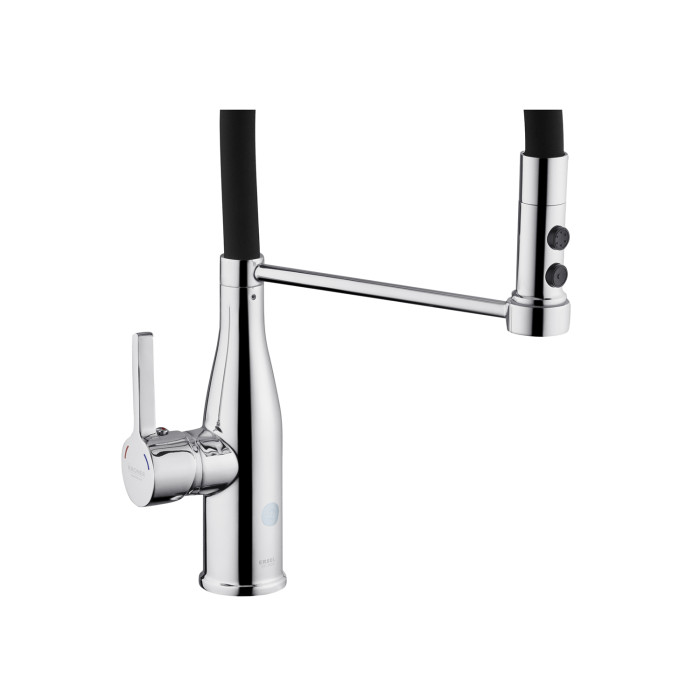 Kroner KRP Ersel - C03111BLK поєднує в собі елегантний хромований корпус з функціональним чорним гнучким виливом і універсальним аератором, що робить його ідеальним вибором для будь-якої сучасної кухні.