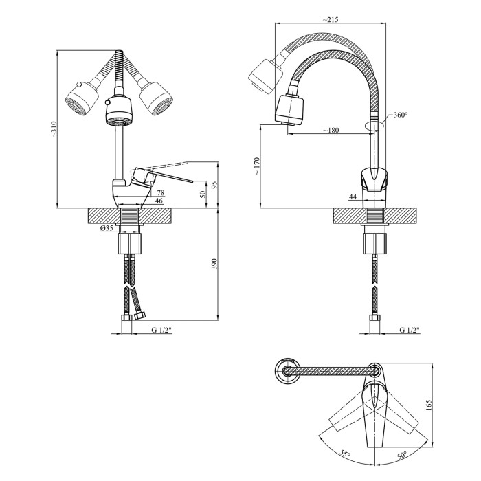 Змішувач, гнучка підводка, кріплення, інструкція.