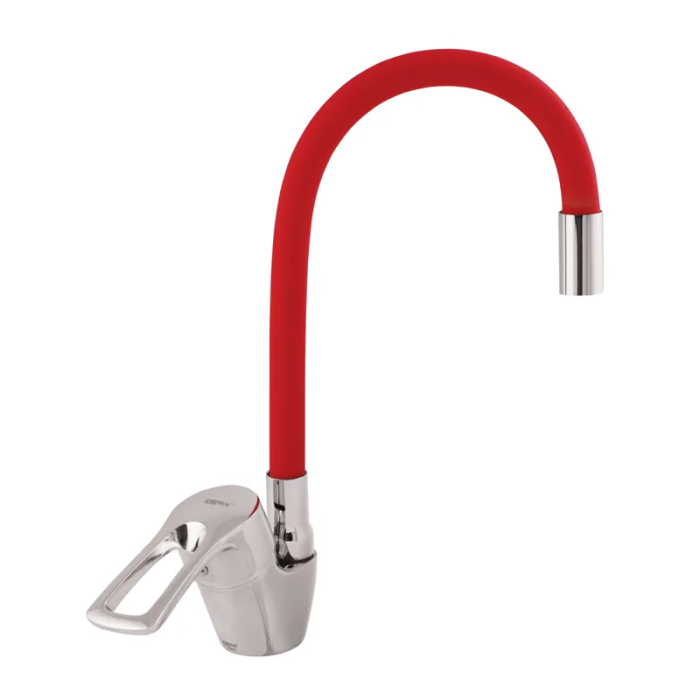 Змішувач для кухні Zerix YUB 181 з червоним гнучким виливом (ZX0435)